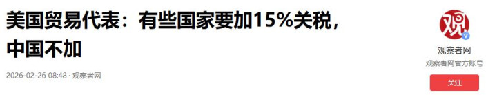 这一下特朗普政府没办法再像以前那样随意加征高额关税,只能赶紧换别的法案继续推进贸易政策。按照新的安排,美国要对全球很多国家加征关税,有的国家加 10%,有的国家加到 15%,可唯独对中国,白宫明确表态不会加征新的关税,维持现有关税不变。